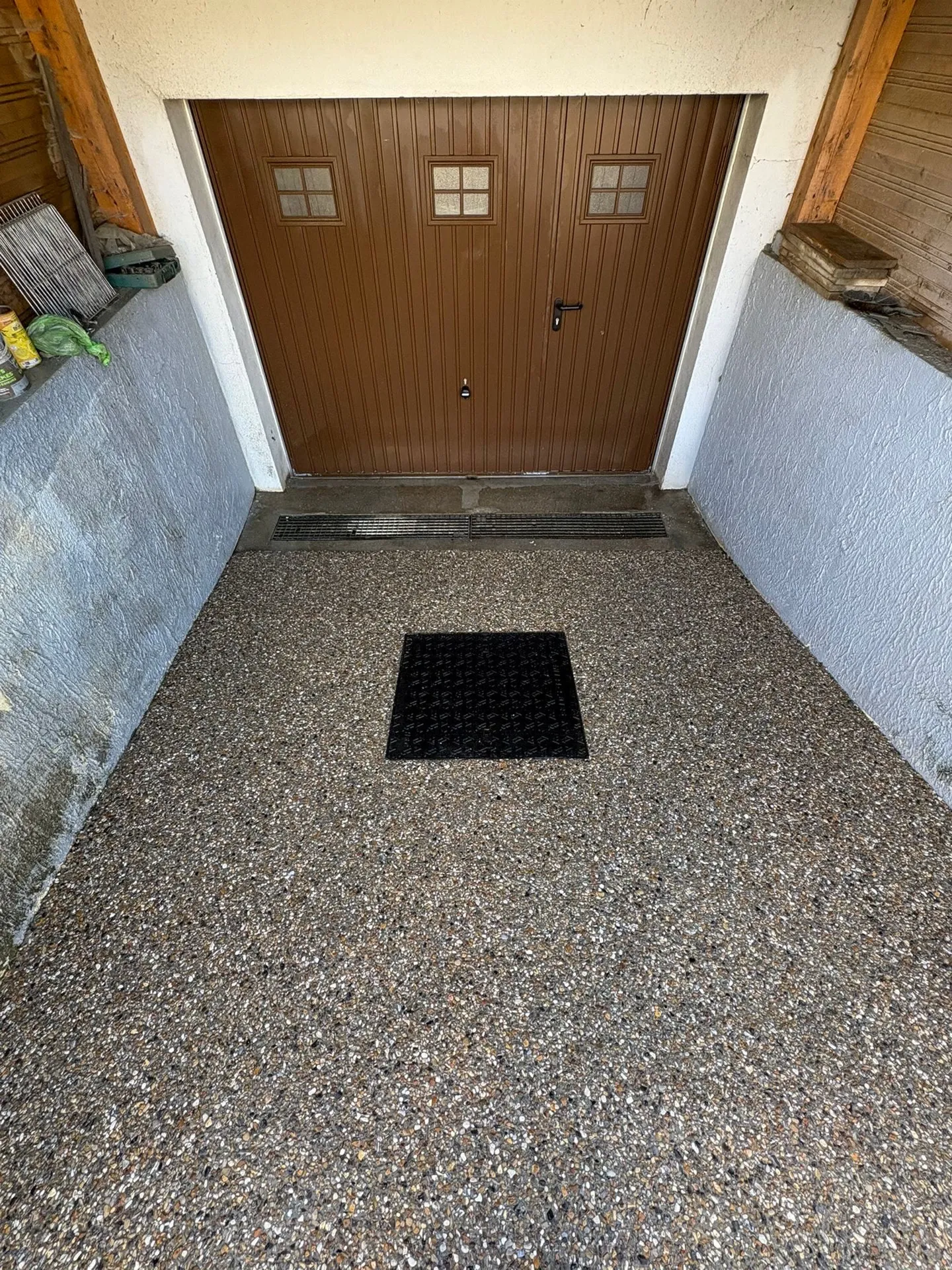 Le béton désactivé (ou béton lavé) est le revêtement idéal pour vos allées de jardin, terrasses ou descentes de garage. Son aspect gravillonné offre un rendu naturel qui s'intègre parfaitement à tous les styles d'architecture. Au-delà de son esthétique, il est particulièrement apprécié pour ses propriétés antidérapantes et sa grande résistance aux passages de véhicules et aux intempéries.